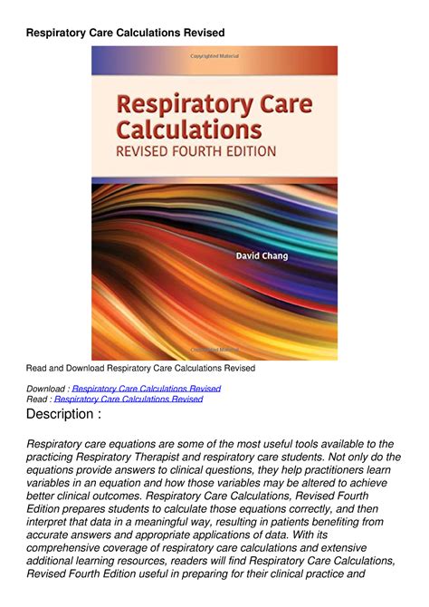 Free PDF Respiratory Care Calculations Pdf rtf Open Library